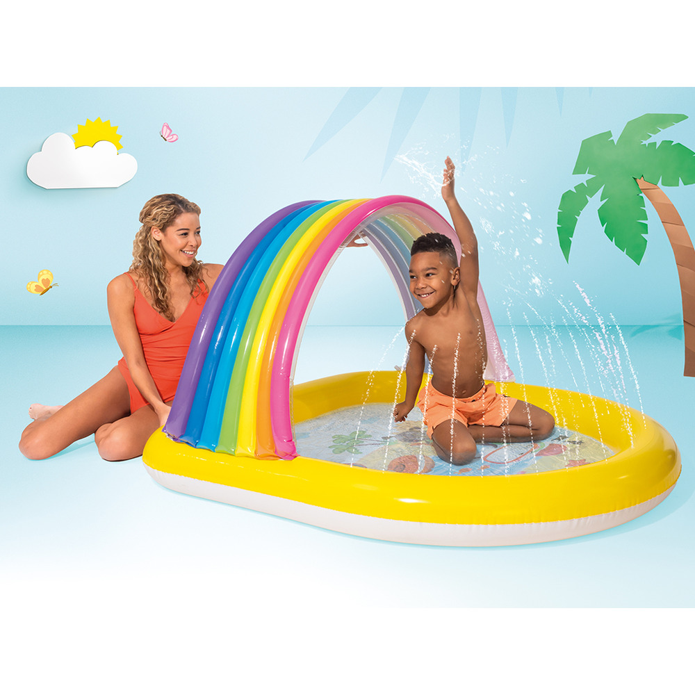 Бассейн детский с навесом "Цвета радуги" Intex 57156, предназначен для купания детей от 2х лет (под присмотром взрослых). Яркий окрас и форма бассейна станут оригинальным украшением вашего участка, не оставив равнодушными вас и ваших родных.