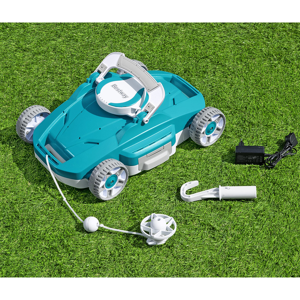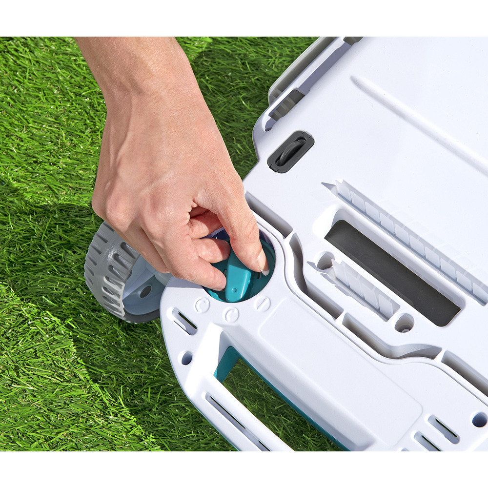 Робот-пылесос для каркасного бассейна Bestway AquaTronix - полностью автоматизированное беспроводное устройство для тщательной очистки воды от мусора и грязи. Включите пылесос, поместите на дно и занимайтесь своими делами: этот проворный робот проведет уборку за вас! Отсек для мусора вмещает до 3,5 литров загрязнений, а литиевая батарея держит заряд до 1,5 часов - этих ресурсов вполне хватает для полноценной беспрерывной работы. В конце очистки вам останется лишь достать робота из бассейна - для этого предусмотрен специальный крючок для извлечения - и можно наслаждаться купанием в чистой воде!